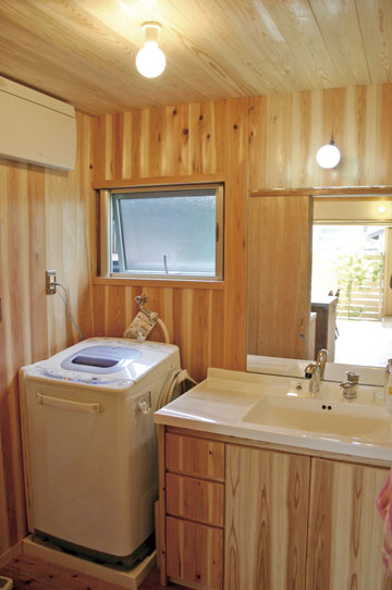 浴室/ハーフユニットバス・水栓:TOTO、壁・天井:さわら板張り