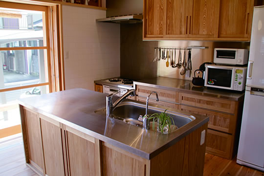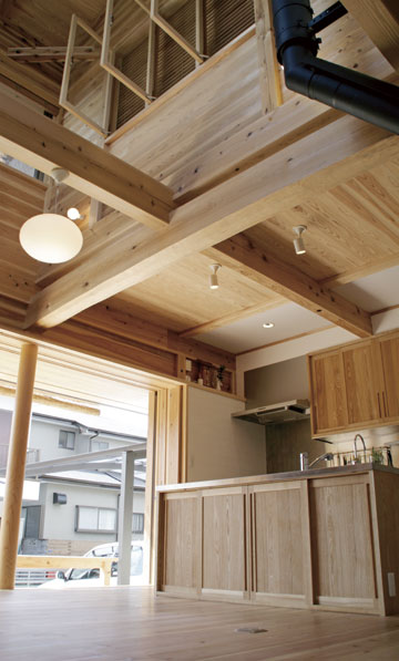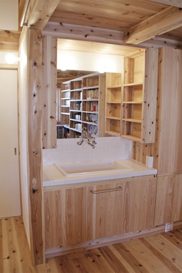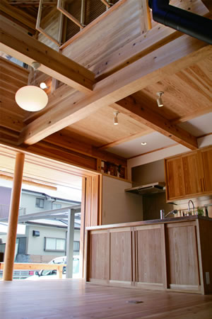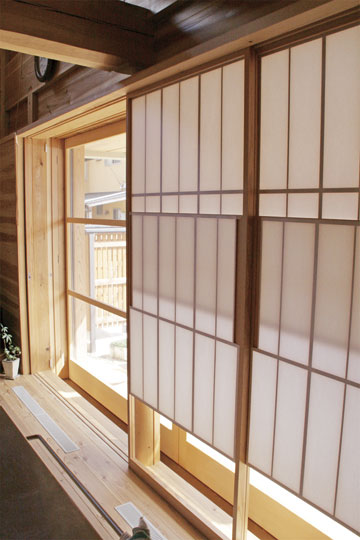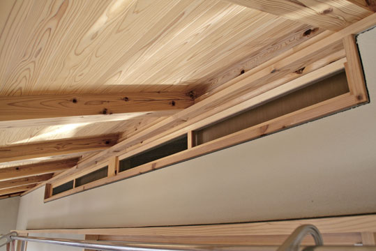 この地域は、朝は西風、昼間は南風、夕方には北風…と、風の流れが変わる。気持ちの良い風を家の中へ取り込みたいという施主の思いから、風の入り方をシュミレーションし、設計との打合せ段階では窓の位置や形に至るまでを決めていった。風道を作るため、部屋の間取りや建具・設備という3つの事を考慮していった。