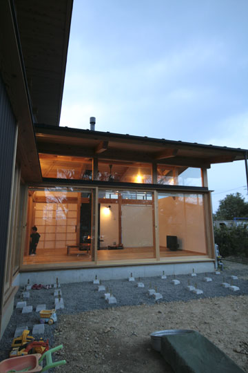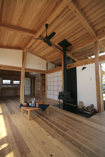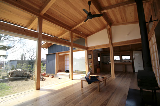 “自分たちのライフスタイルに合った、のびのびと暮らせる家”が完成しました。この家では、職人の技術を随所に見ることが出来ます。大工の手刻みはもちろんの事、その手で造られた仕事(継ぎ手や仕口)を隠さず現していくことや建具屋の伝統的な手法で造られた框戸など、職人の手で造り出されています。手仕事に関心を寄せていただき、私たち造り手としても、とてもやりがいのある仕事をさせていただきました。「人の手でつくりあげたものを大切にしていきたい」というSさんの気持ちが、たくさん詰まった『青の家』をご紹介致します。