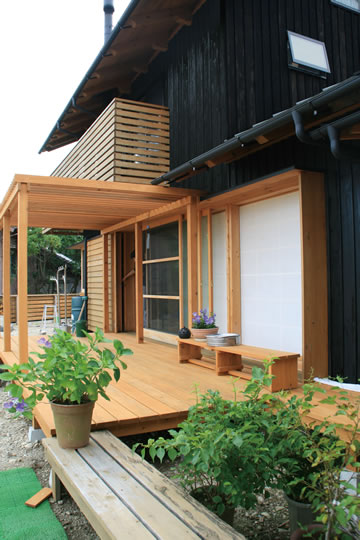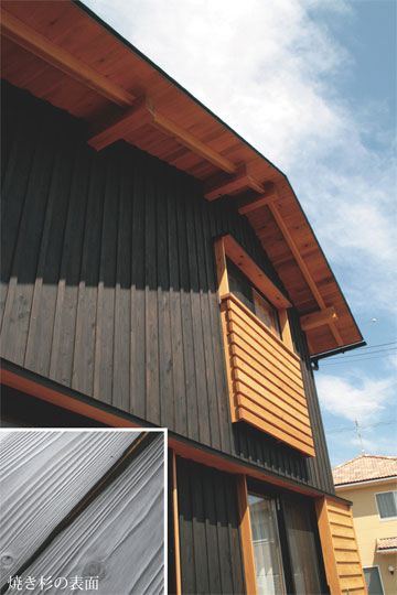 Nさんご家族の家造りは、5年の歳月をかけて様々な体験を通して学び、そしてチャレンジすることで築かれていきました。中でも特に力を注いだのは外壁で、二世帯住宅の全ての壁が、焼いた杉板で造ってあります。ゆっくりと時を掛け、沢山の想いを重ねた「種の家」をご紹介したいと思います。