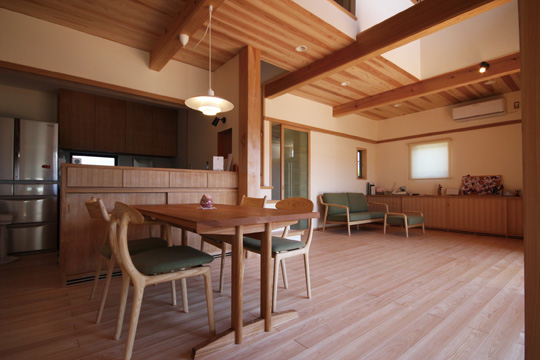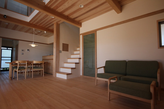 家の骨格は、大工の手刻みでつくる木組みの家ではありますが、現しの木の家では無く、良質な桧と漆喰などの塗り壁を主体とした、メリハリの有る木の家になっています。 家族構成/家族3人 屋根/ガルバリウム鋼板 縦ハゼ葺き 設計者/山崎健治 |
