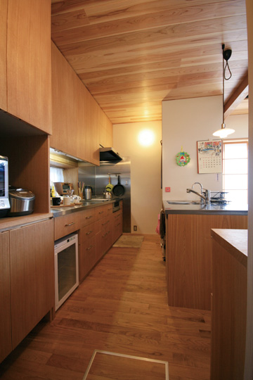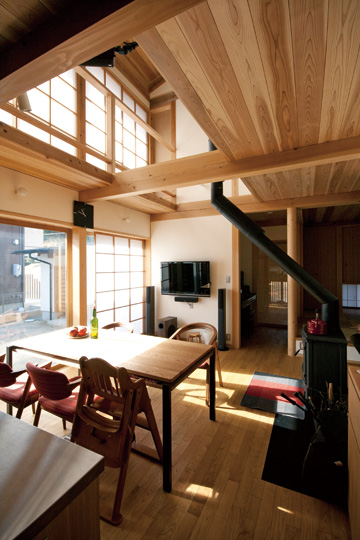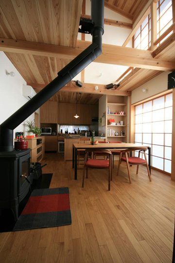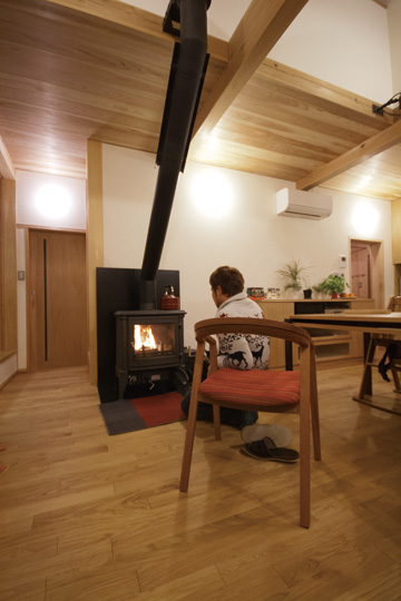 また、お施主さまの「自分たちの手で暮らしを創っていく」思いがあり、さまざまな事にチャレンジし、ひとつひとつ積み上げた家。壁の施工や薪小屋など、お施主さま自らが施工に参加した「セミ・セルフビルド」の建物です。 家族構成/家族4人 屋根/ガルバリウム鋼板 縦ハゼ葺き 設計者/山崎健治 |