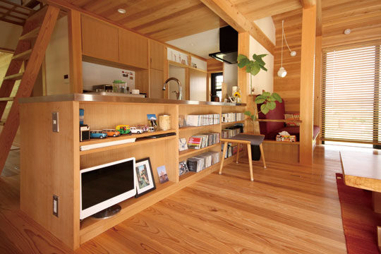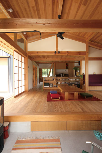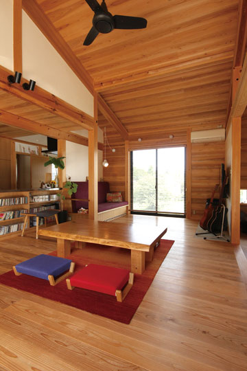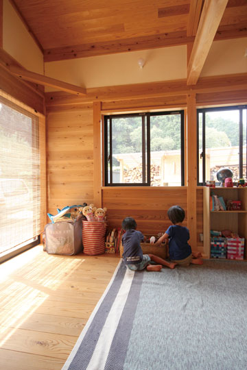 今回ご紹介する『青天の家』のYさんご夫婦が選んだ敷地は少し小高い場所にあり、近くの田や畑から遠くの山並みまでが一望出来る清々しい景色に恵まれた敷地でした。決して便利な場所では無いですが、伸び伸びとしたこの場所で新しい暮らしをスタートしたいと熱意を持って語るYさんは頼もしく、また秘密基地をつくる無邪気な子供のようでもありました。打合せから完成まで熱の入った時間を過ごし、当初のイメージ通り、家中から家族の笑い声が聞こえて来るお宅になったと思います。今回号は、恵まれた周辺環境を活かした伸び伸びとした木の家のご紹介と共に、Yさんの遊び心を取り入れた細部などもご紹介します。