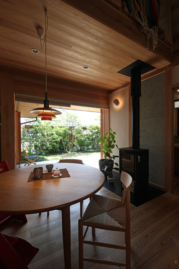 一昨年の6月に完成した『ツナガリの家』は、『ここらぼの家』と同じ敷地に建つ、Tさんご家族の住まい+鍼灸院の建物です。『ここらぼの家』の号でも紹介しましたが、1つの敷地を共有し、お互いの建物と車庫兼薪小屋で中庭を囲んだプランが大きな特徴です。完成から2年経過したこの春、念願のお庭が出来上がりました。中庭を中心に様々な木々や草花を植え、お互いの玄関前にはそれぞれ違った趣の前庭やアプローチをつくりました。タイトルにもつけたキーワードは“木と人との繋がり”。『ツナガリの家』は、鍼灸院や『ここらぼの家』を通して色々な方が利用する建物になり、また、Tさんご夫婦の人柄や発信力で、多くの方々の出会いの場となる新しい繋がりを生む場所になっていくと感じました。