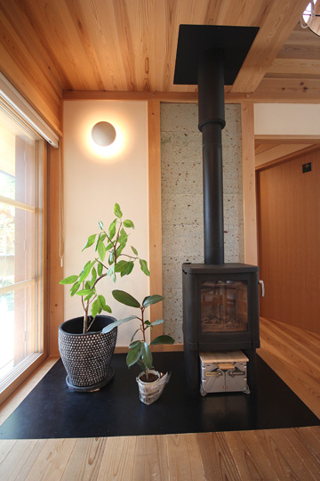 壁/漆喰塗り、青森ヒバFJ本実板張り、大谷石張り