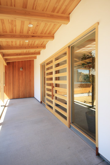 外壁/ガルバリウム鋼板貼、漆喰コテ押さえ仕上げ、杉赤本実板縦貼 |