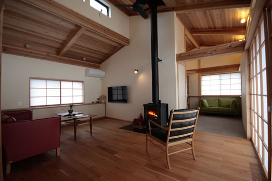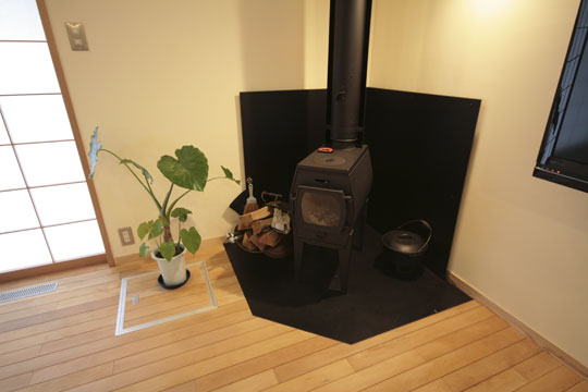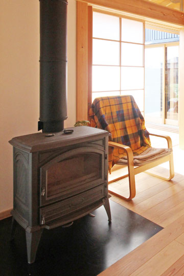 掛川・落とし板の家(ストーブ工房山林舎 シェーカーストーブ窓付き)