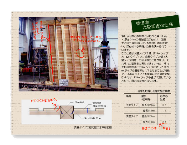 しかしこれらの性能が有りながら、一般住宅をこの板倉構法で建てたくても、建築基準法の基準に合せる為には、筋違いや合板などを用いて施工せざるを得なかったり、実験結果などを元にして建築主事に説明したりと、一軒一軒試行錯誤しながら建築を行っていました。