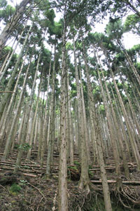 しかし植林された苗木が生長する間に、コストが安い輸入木材が年々増え続け、今では日本の木材消費の80%を占め、人工林は伐採されずに放棄されてしまいました。そして日本の林業は衰退し、手入れのされぬ人工林は荒れ果て、バランスを失った森は国土保全の上からも危機的な状況に直面しています。