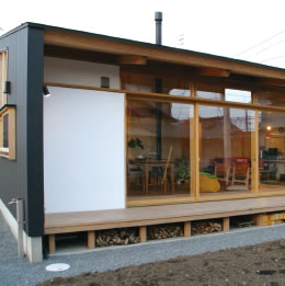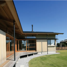 平屋建ての伸び伸びした外観には内樋がお似合い。直線的な軒先がシャープな印象を与えてくれます。