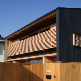 必要なものだけのボックス型の外観。建物の南側のみ設けた軒を内樋にする事で、シンプルな外観の中に、品格が現れている。