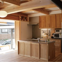 そんな悩みもあり、ココラボでは家と合わせてキッチンの設計も行い、大工や建具屋さんが主要部分を造っています。材料も無垢材を使用し、