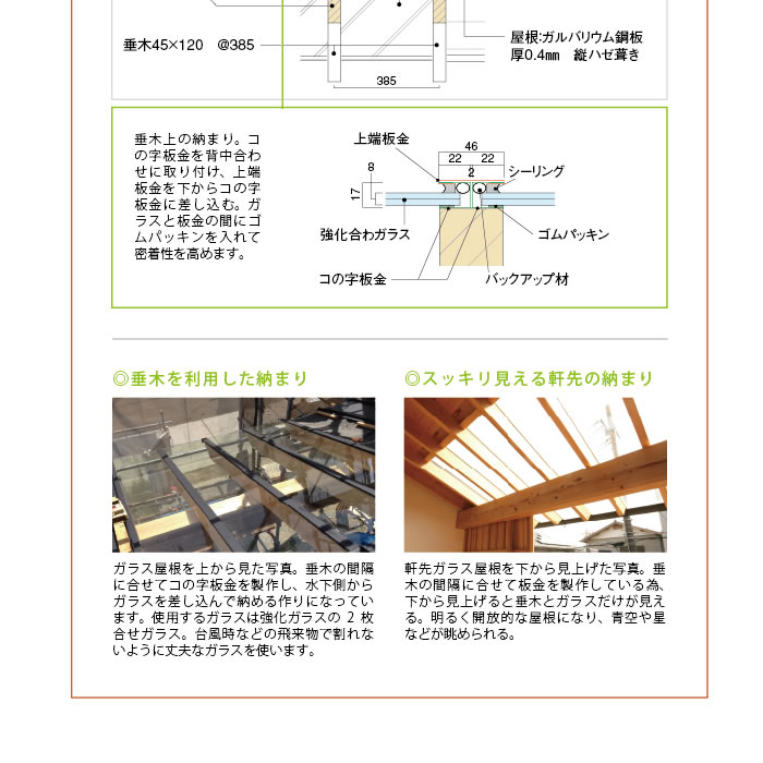 今回は軒先ガラスの図面を中心に、その作り方や注意点をご紹介したいと思います。豊かな暮らしをつくる工夫のひとつとして参考にしてください。