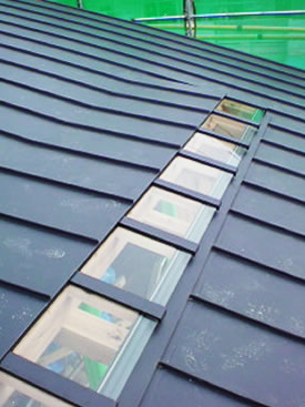 ベランダ屋根に設けられた天窓。 合計8枚の天窓が連続している。