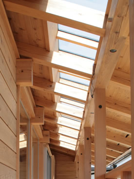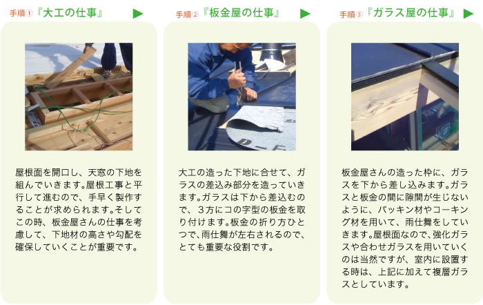 いくつでも連続出来る天窓を考えました。屋根面に設置する訳ですから、当然、雨漏りに関しては、十分配慮した納まりでなければいけません。