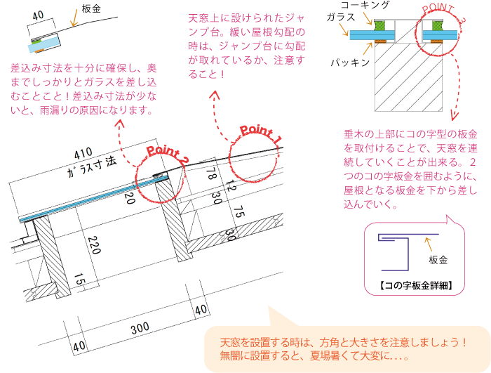 ですが、一般的な天窓は、サッシメーカーなどの既製品を使う事が多く、大きさや取付け方が制限され、
