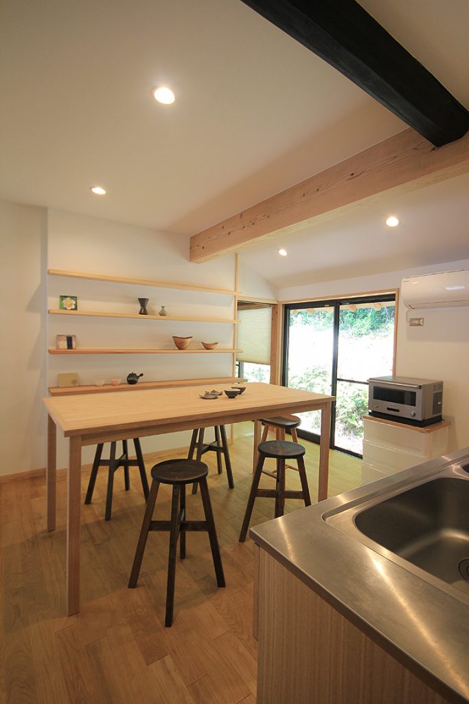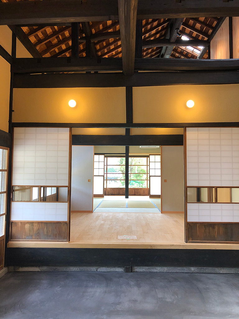 昨年の夏、藤枝市瀬戸ノ谷地区に古民家をリノベーションした農家民宿が完成しました。運営しているのは、有機無農薬茶づくりに取り組む「人と農・自然をつなぐ会」の杵塚さん。数年前から空き家になっていた築80年以上の古民家を、なんとか活かしたいと思い、様々な取り組みをしながら考えていたと伺いました。「人と農・自然をつなぐ会」は、40年以上前に生産者の仲間と共に無農薬茶の会を発足し、以来、完全無農薬、有機栽培でお茶を生産してきました。また、早くから海外との取引も多く、様々な国の方がお茶の職業体験などに来るようになりました。せっかく来てもらうのだから、この地域に宿泊してもらい、お茶だけでなく、瀬戸ノ谷の魅力を知ってもらいたいと思うようになり、古民家の活用と重なり、体験型の農家民宿をつくりたいと考えるようになりました。改修工事で新しく生まれ変わった空間や素材と合わせて、基本性能アップの工事についてもご紹介したいと思います。