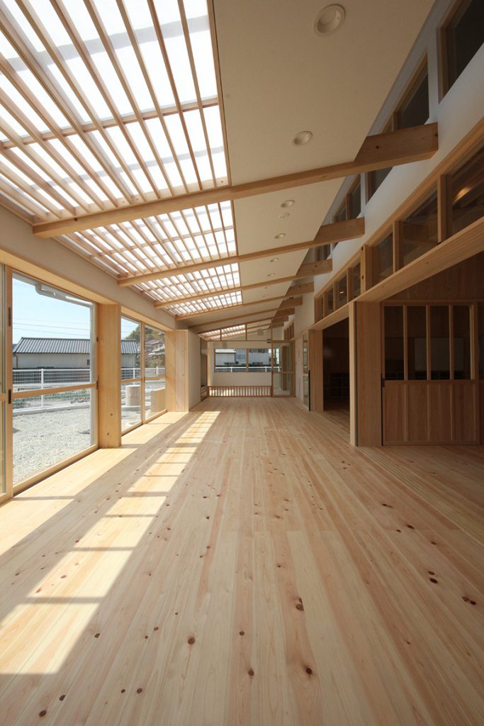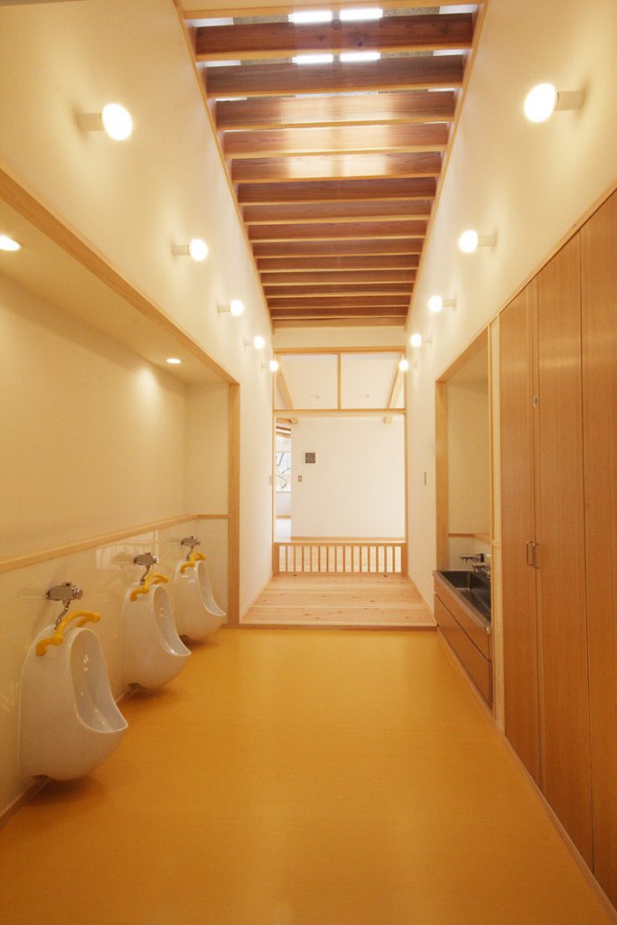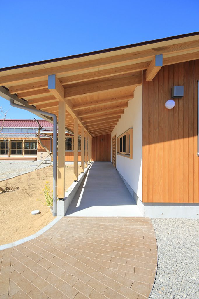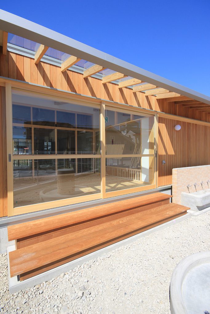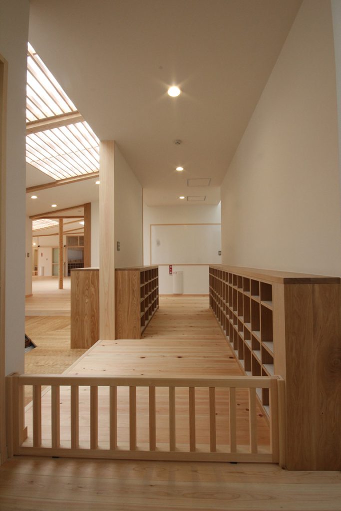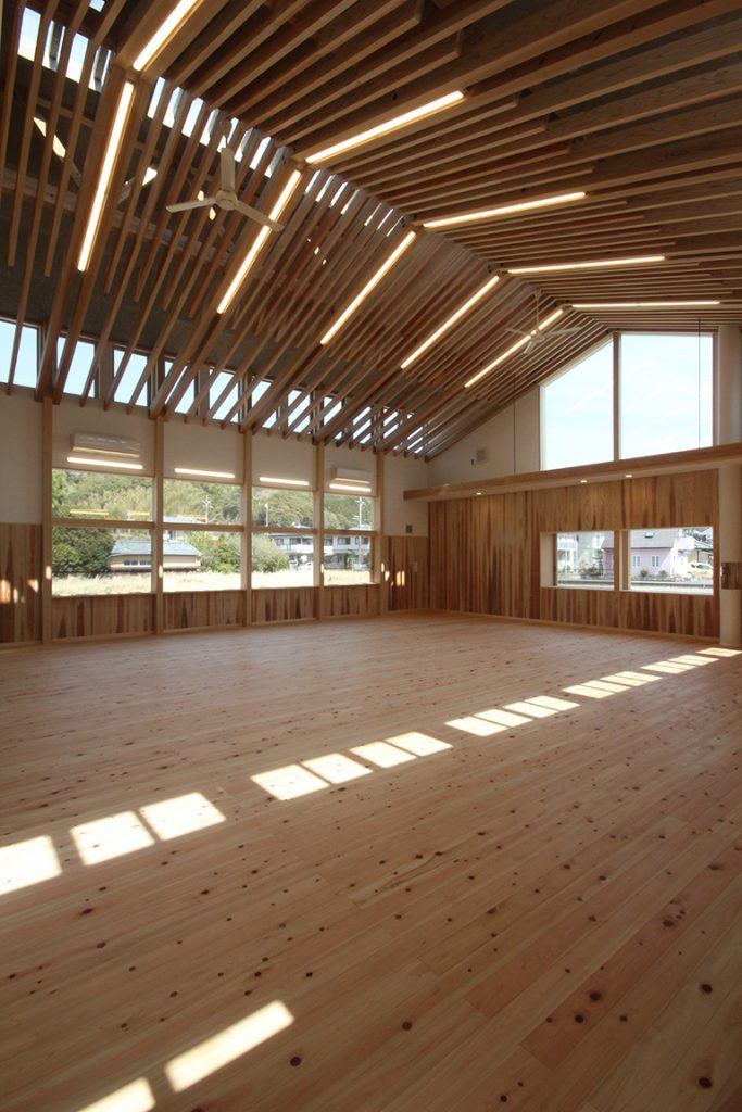 今年の春、島田市に新しい木の保育園が誕生しました。元々同地域にあった保育園の園庭が土砂災害の警戒区域に指定された事と、建物の老朽化や耐震性等の問題が重なり、今回の場所への移転として新しく計画されました。いろいろな問題はあったものの、旧園舎の周辺には小高い山や木々、田んぼなどが広がり、自然と一体となった遊びや体験を軸とした保育が評判の保育園でした。私たちが提案した園舎は“保育理念=園舎づくり”をテーマに、周辺環境が変わっても、旧園舎での思い出や取り組んできた保育を活かせる園舎をつくりたいと考え、リズム体操が出来る広い遊戯室を確保し、保育室などから周辺の山々が見渡せ、園舎と園庭が一体となったプランを提案しました。合わせて、地域の木材をふんだんに使い、仕上げにも木を現した保育園とし、優しく暖かく、そして地域の自然を身近に感じられる内部空間としました。