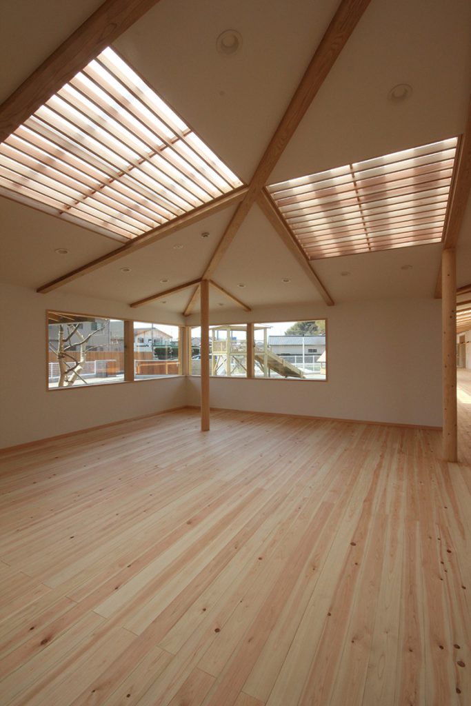 | 内部仕上 | 天井仕上/石膏ボード12.5㎜下地、ビニールクロス貼り、 木毛セメント板貼り13㎜ 間仕切壁/石膏ボード12.5㎜貼下地、杉本実張り12㎜、 ビニールクロス貼り 床/構造用合板28㎜下地、桧本実板張り15㎜ 内部建具/桧木製オリジナル建具 |