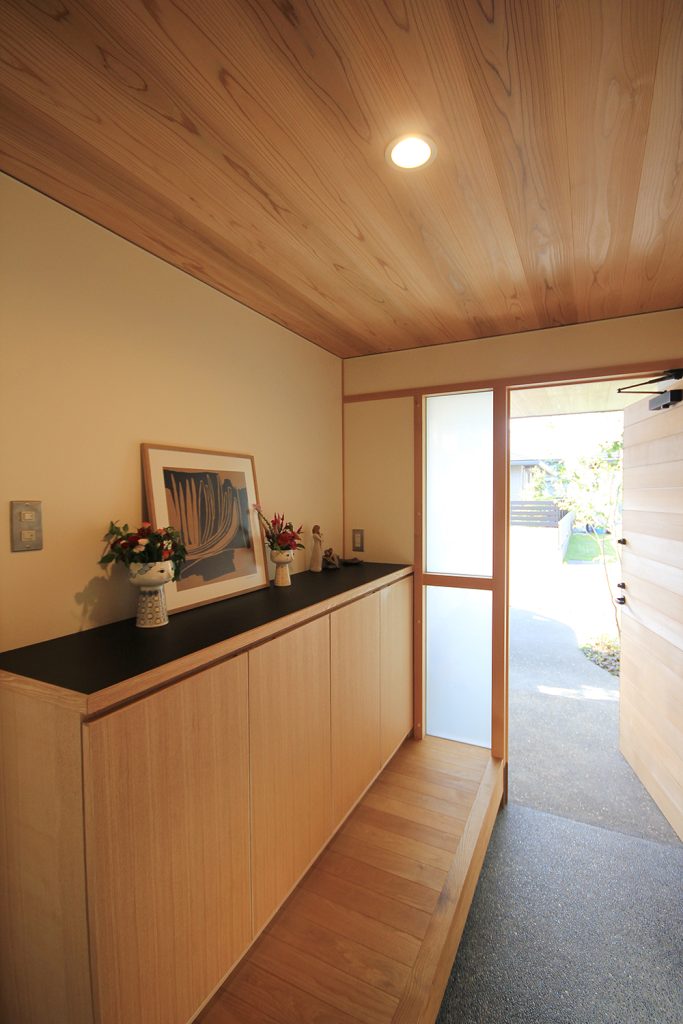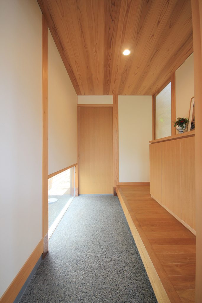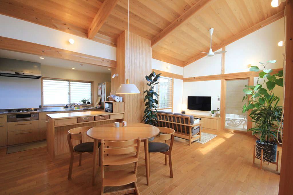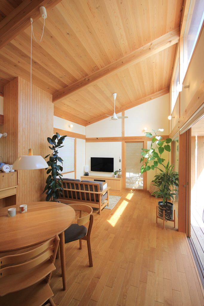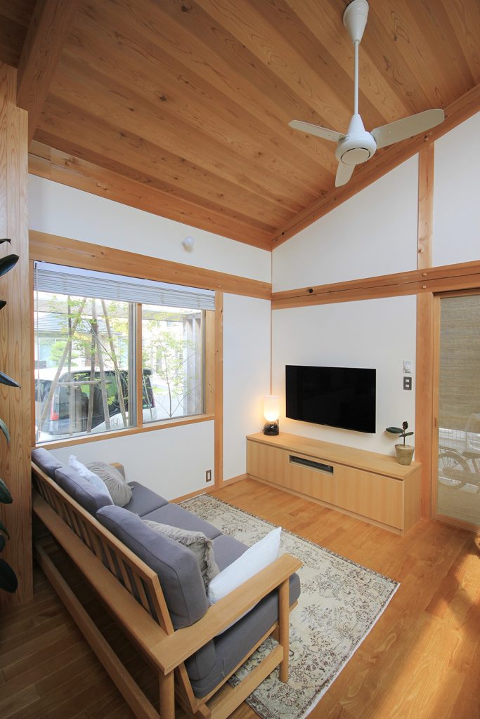 2018年の初夏に完成したTさんのお宅は、焼津市の区画整理地内に建築されました。道も広く周辺環境も良い場所で、暮らしていくにはとても利便性の高い土地でしたが、計画当初、隣接する土地にどんな家が建つのかわからないことが問題でした。様々なケースを想定して考えていく必要がありましたが、以前3方を住宅で囲まれた敷地での計画を思い出し、今回も敷地の形状が似ていることから、中庭のあるコの字型のプランを提案しました。Tさんの家の建築中にはあっというまに住宅が建ち、囲まれた敷地となりましたが、周辺が気にならない静かで落ち着く空間になりました。