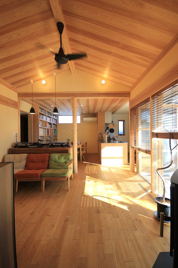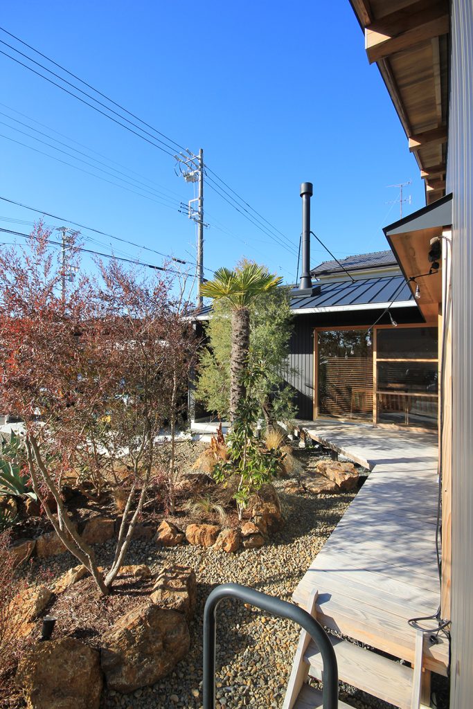 昨年の春、私の地元でもある掛川市に『きらくの家』と題したSさんご家族のお宅が完成しました。『きらくの家』は、広い道路からの影響と東南側のマンションの存在という大きな特徴のある土地でしたが、今回の敷地条件とSさんの要望を重ね、L型配置のプランを提案しました。