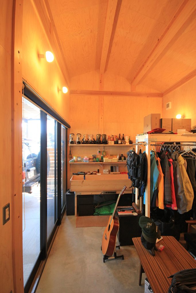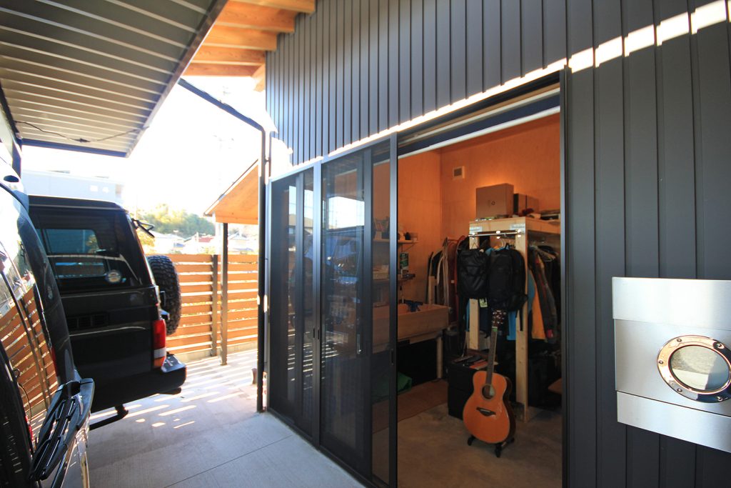 またガレージの奥に趣味室を設けました。ここは、玄関を挟んで生活の場と意識的に離し、思う存分自分時間を楽しめるスペースとなりました。