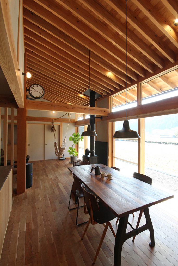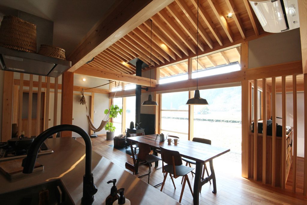 『光彩の家』と名付けたKさんの住まいは、大きな窓から山の木々や川沿いの桜並木が見え、四季を通じて景色を楽しむことができる敷地に建っています。Kさんの家は、ココラボの木の家の雰囲気とは少し違い、ちょっとした素材の使い方やインテリアの選択で、また違った雰囲気を感じる、ノスタルジックなムードのあるお宅になりました。土地の申請などで着工までの時間がかかりましたが、自分たちに合った家に近づけるため、設備や家具について時間を掛けて選ぶことができ、時間をかけた分だけ納得のいく選択が出来、家の完成と共にKさんワールドの住まいとなりました。