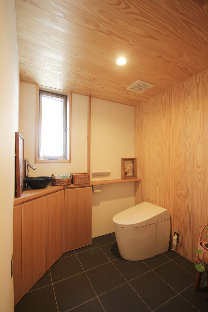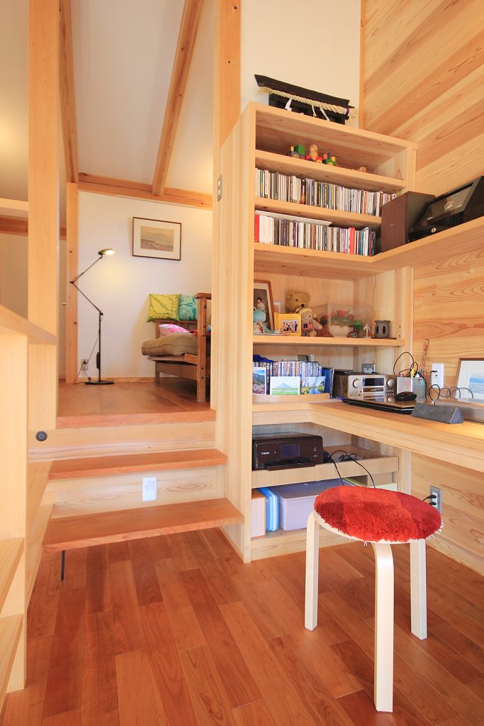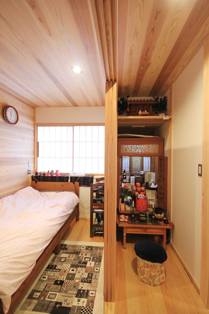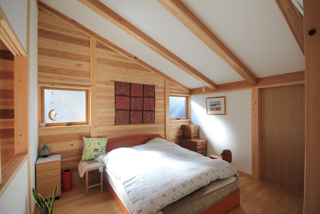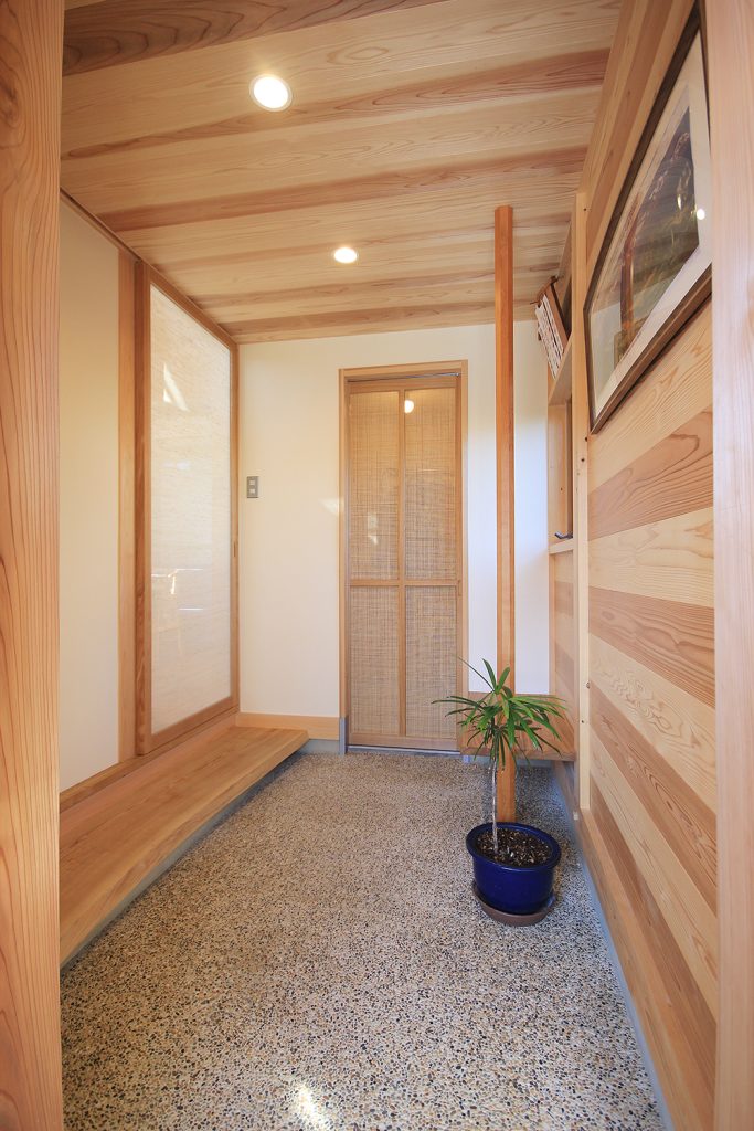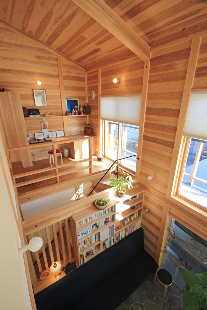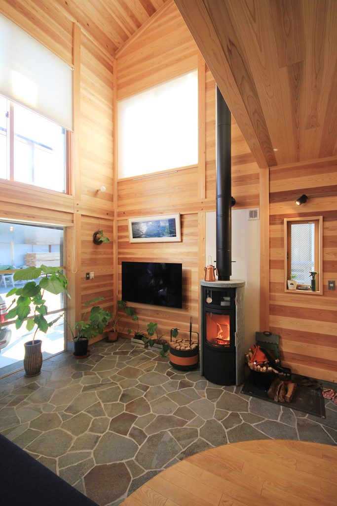 今回の完成現場報告は、昨年の春に完成したTさんにお願いしました。元々は横浜に暮らしていたTさんご家族ですが、子供たちも成長し新しい生活を始めた事や、高齢になるご両親の事が心配になり、思い切って実家への引っ越しを決断されました。新しい住まいはTさんご夫婦と奥さんのお母さんとの3人暮らしを基本とし、実家とひと続きの土地に住まいを計画しました。今回のポイントは、大きな吹き抜け空間の石土間の広間や、スキップフロアーでつながるワンルーム空間です。吹き抜けは開放感も感じますが、家族の気配も感じられるのが良い点です。また、打ち合わせで一番白熱したお母さんのお部屋と仏壇置場の配置。仏間を別につくらずに引き込み障子で仕切ることにし、いい感じになりました。