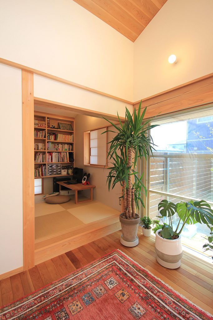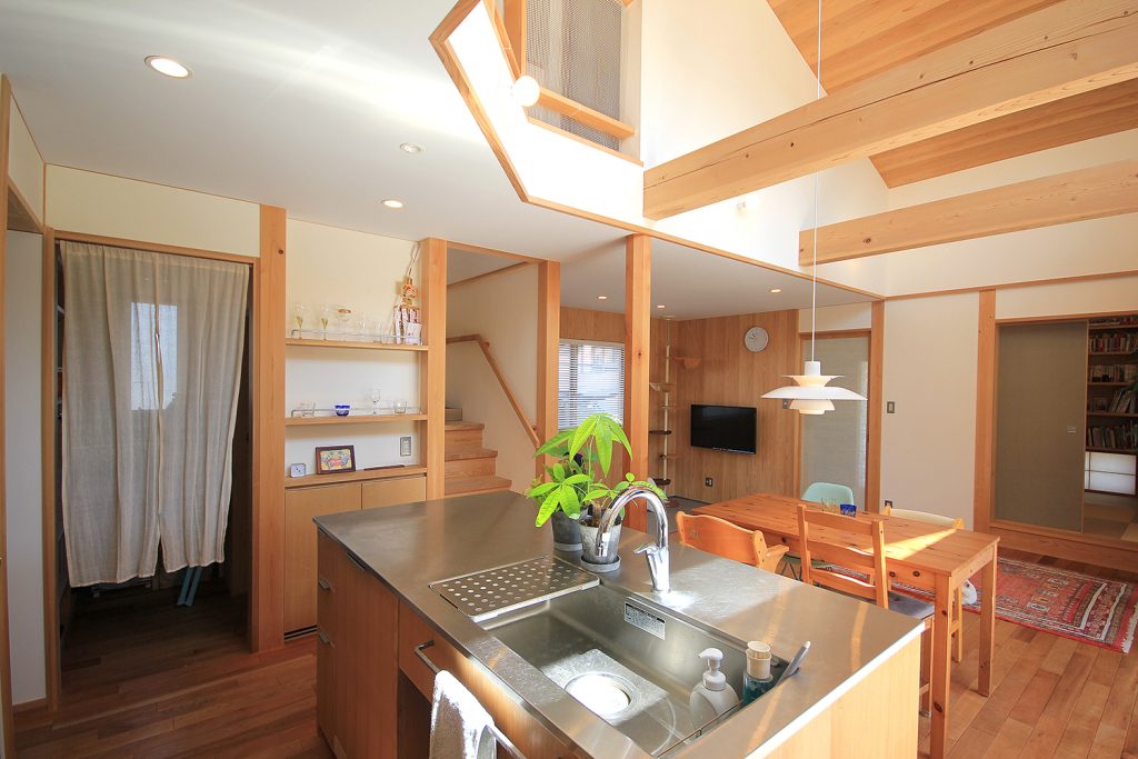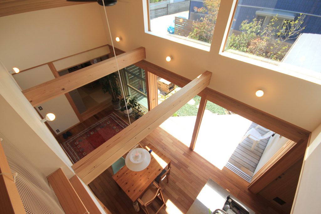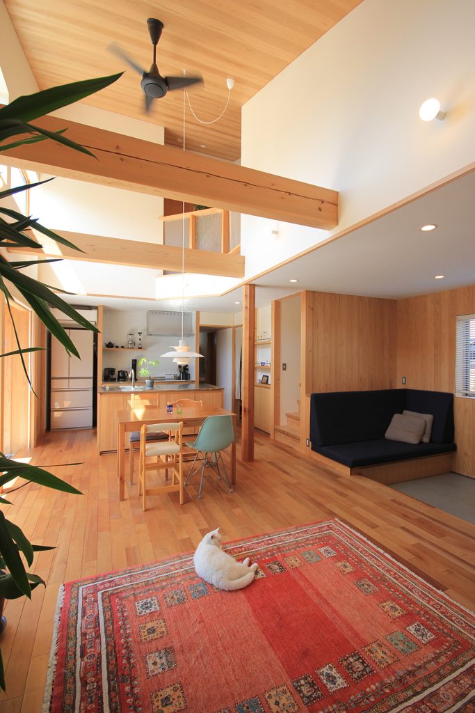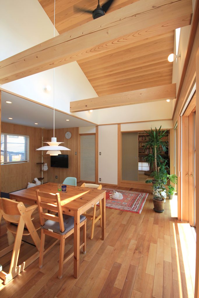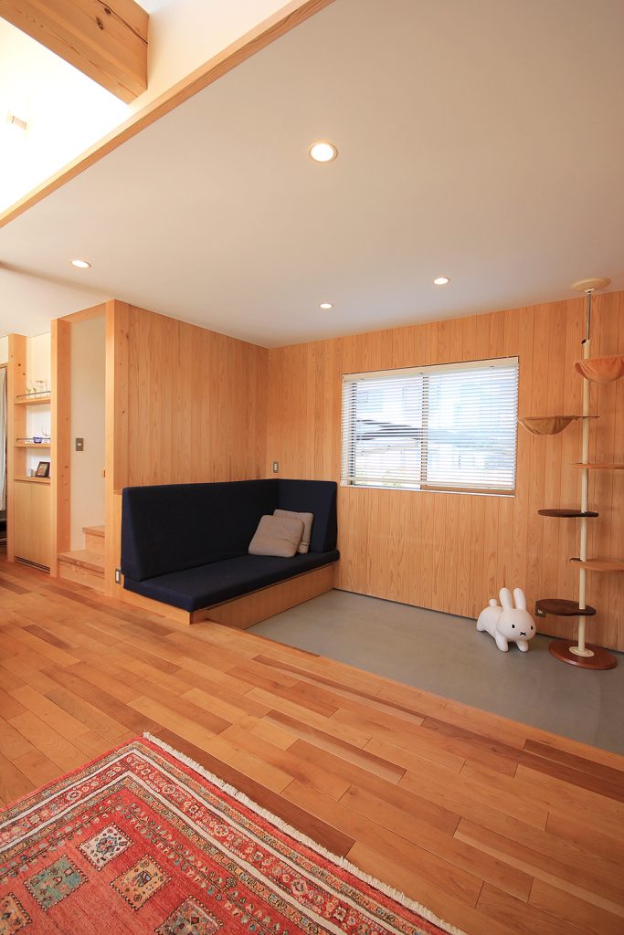 一昨年の夏に完成したNさんのお宅は、ご夫婦+お子さん2人+しっぽ家族(猫)2匹ので暮らす、2階建ての木の家です。家づくりの計画に合わせて、お母さんの運営するクイリングアート教室も拠点に持ちたいという事で。Nさんご家族の住まいにアトリエを併設しました。