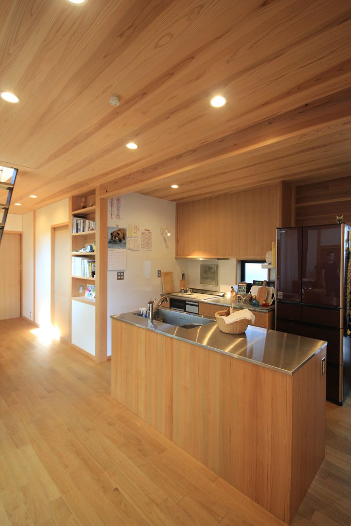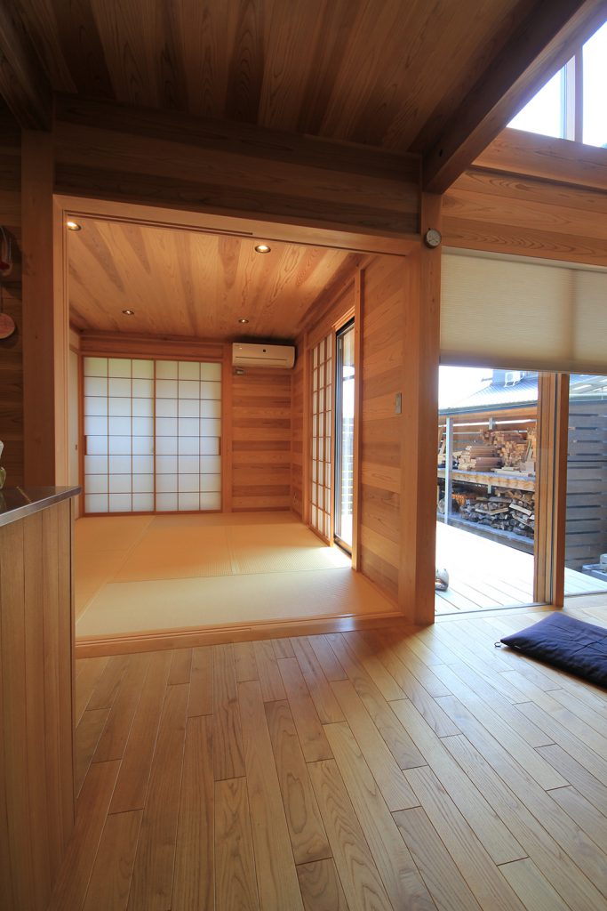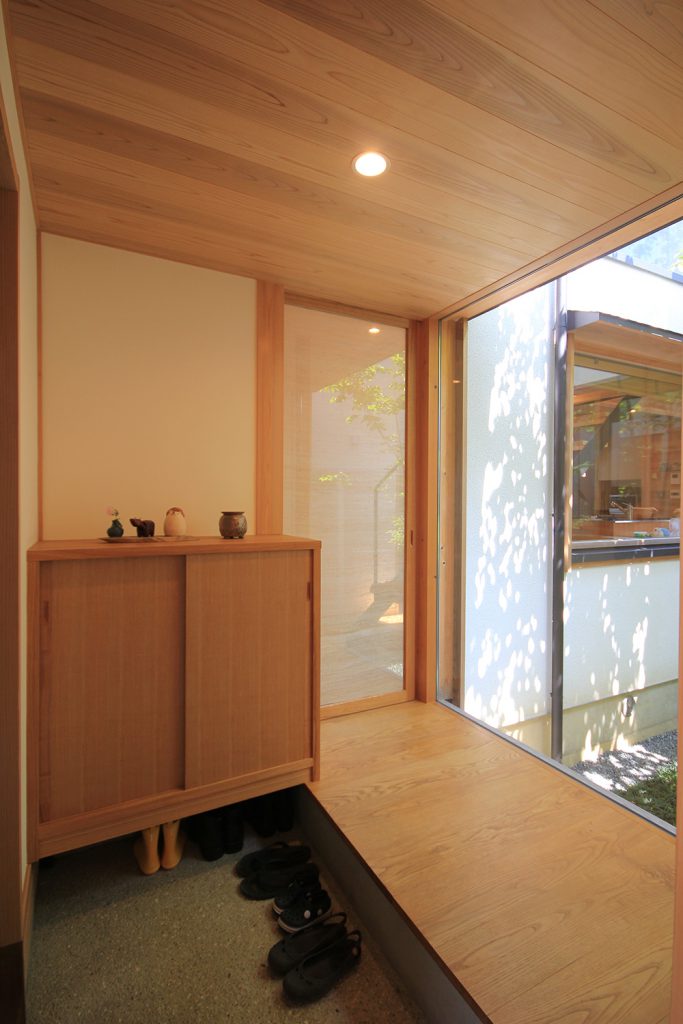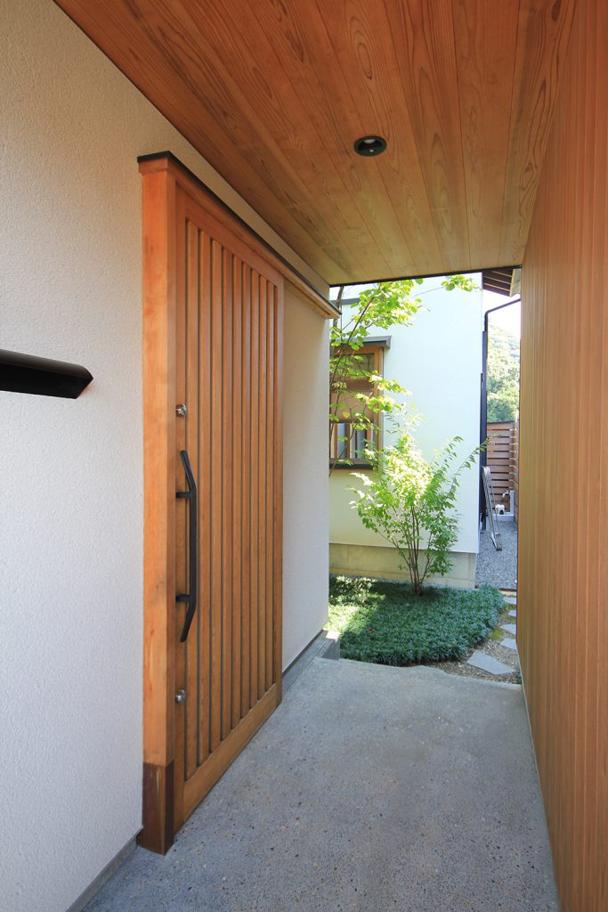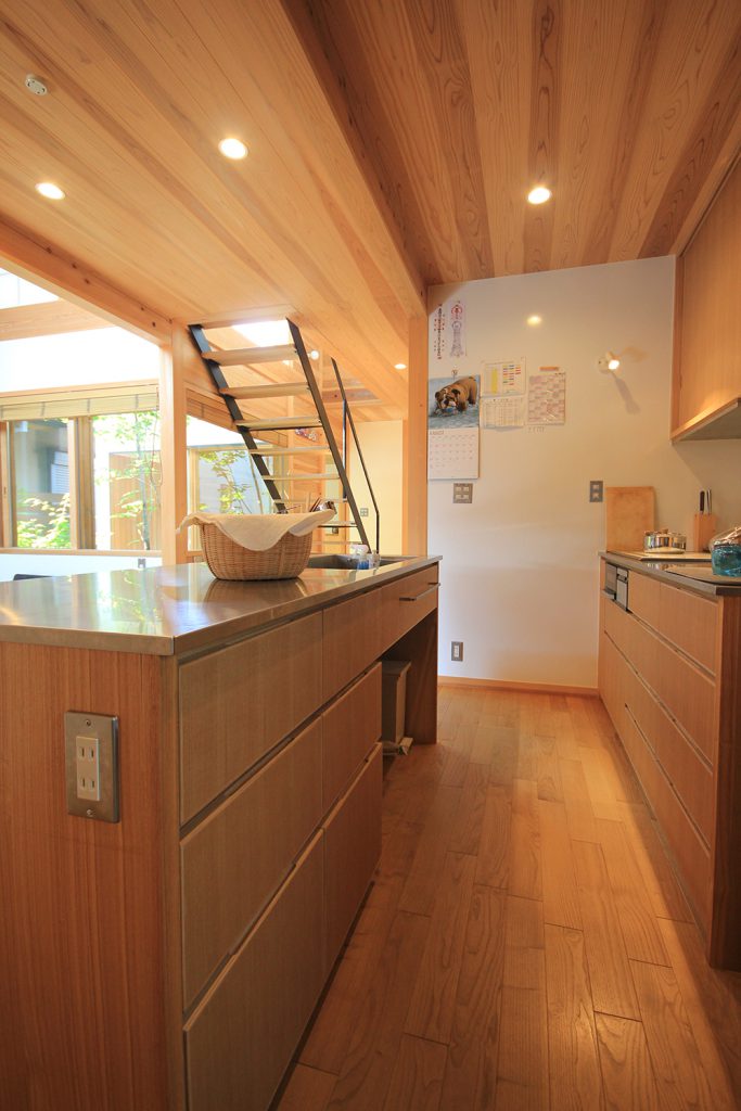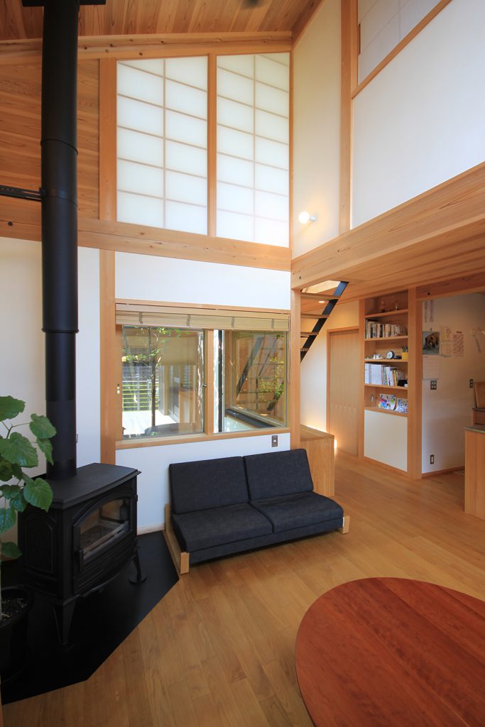 ちょうど2年前に完成したHさんのお宅は、どの部屋も明るく風通しの良い住まいで、ご夫婦と3歳になるお子さんの3人住まいです。昨今の状況から、リモートワークなどで家にいる時間が増えた方も多いと思いますが、窓を開けて心地よい風を感じる仕事時間も良いものだと思います。Hさんのお宅は南北に住宅のある敷地で、日当たりやプライバシーについて少し心配がありましたが、建物の形を工夫し、坪庭や中庭、ウッドデッキなどの外部空間を意図的につくり、隣家との間に適度な緩衝空間を設けたことで、隣家が気にならないだけでなく、坪庭などを通して風と光を取り込む豊かな空間ができました。