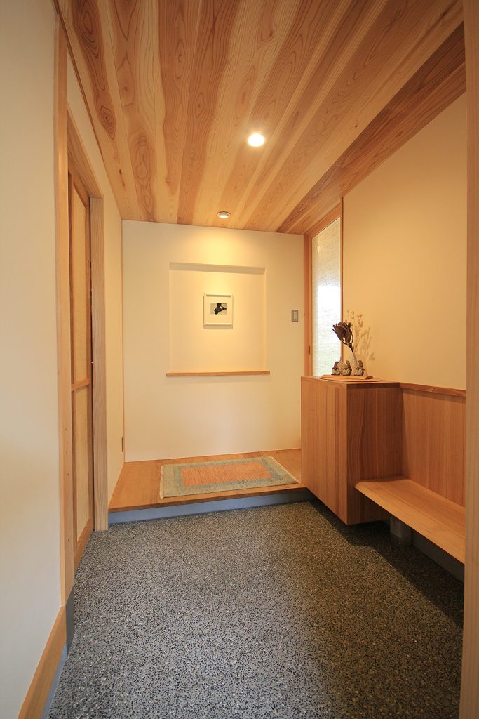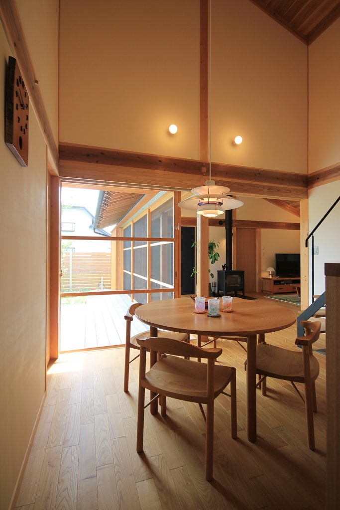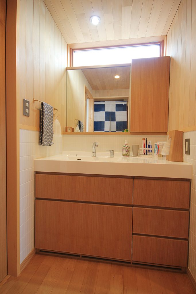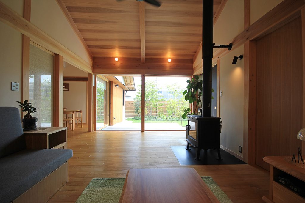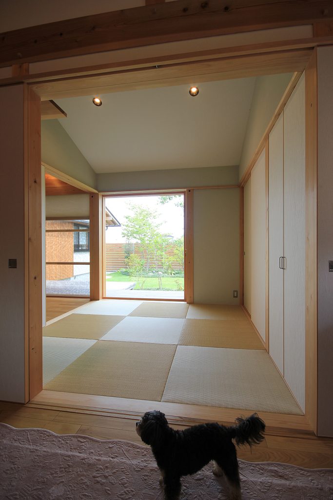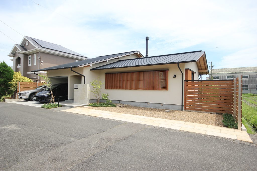 昨年夏に完成した『テンプの家』は、早いもので一年が経過しました。土地の特徴を生かして開放感を感じながらもプライバシーを保つ事のできるL型プランを提案しました。北側道路の利点を生かして、駐車場と建物が一体となった形状も大きな特徴となっています。北側道路の場合、北側に車庫や玄関が配置されることが多いので、南側に広いリビングやダイニングなどをつくる事が出来ます。注意点としては水廻りの配置があり、一般的に建物の北側配置される浴室やトイレなど生活を感じる部分は、極力東か西側に配置し、道路からは、生活が感じられないように注意しています。