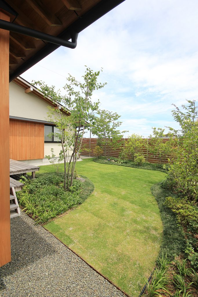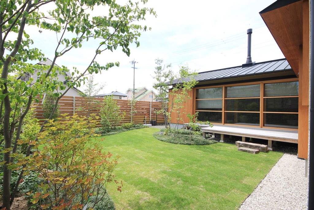 また、Aさんのお宅に入ると、まず窓越しのお庭が目に飛び込んで来ます。緑豊かなお庭は、今年の春に『作庭誠』さんにつくっていただきました。長い間『東香園』さんで経験を積み、私も信頼の置ける職人さんで、東香園さんがお店を閉める事になったので、社長にも頼んで、ココラボの庭づくりを引き継いでもらいました。日本の在来種を基本にした落ち着いた配置で、四季を楽しめるお庭になったと、 Aさんにも喜んでいただきました。