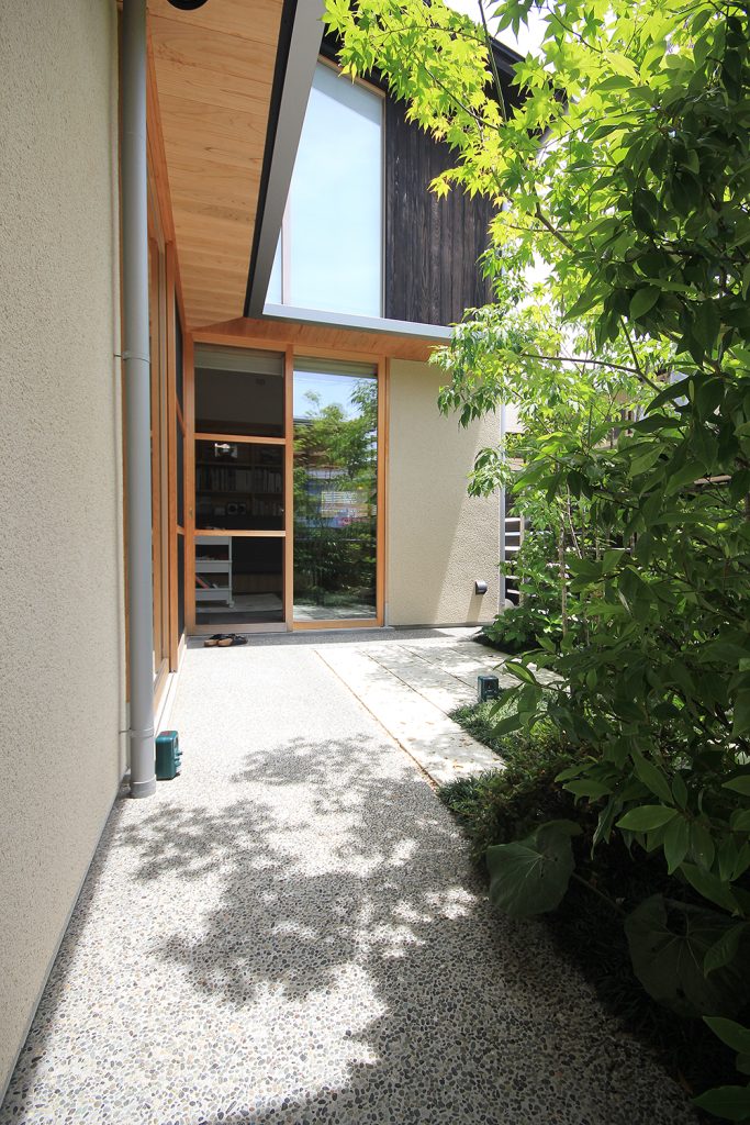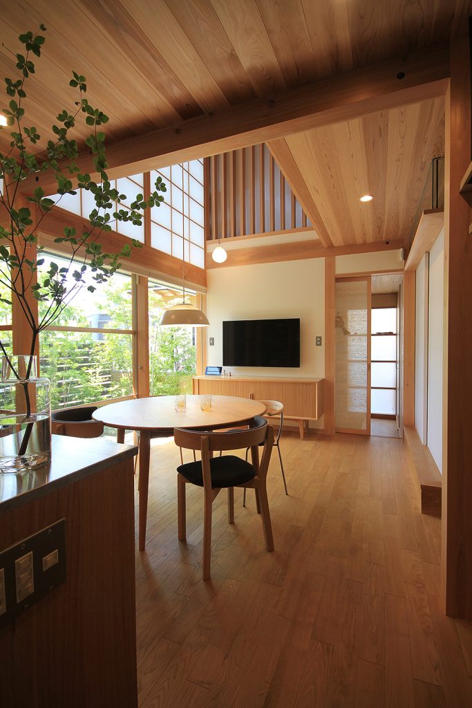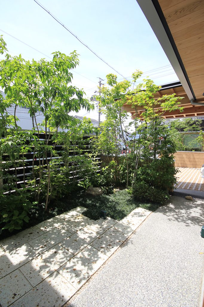 2021年7月、kokolab village(ココラボビレッジ)第1号となるMさんの住まいが完成しました。kokolab villageは3棟の木の家でつくる小さな分譲地。街中の住まいでも心地よく快適に暮らす工夫を凝らし、コンパクトな空間の中に、植栽スペースを取り入れたゆとりのある計画をしました。2020年の春から造成をスタートし、今年の春に3棟全ての建物とお庭工事が完成しました。