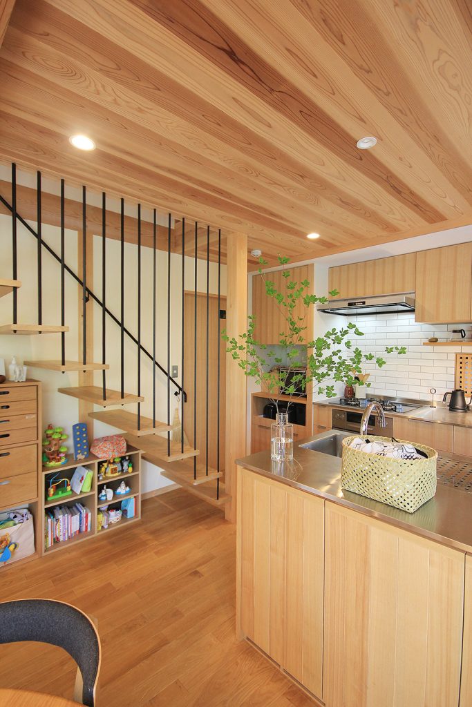 建物は30坪弱と小さめの計画となりましたが、コンパクトな敷地に2台分の駐車場とお庭スペースを確保し、吹き抜けや大きな窓で開放的な暮らしを、適材適所の収納や家事動線で生活しやすい住まいを提案しました。