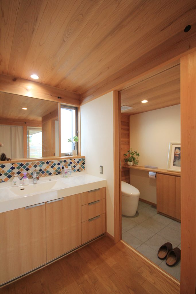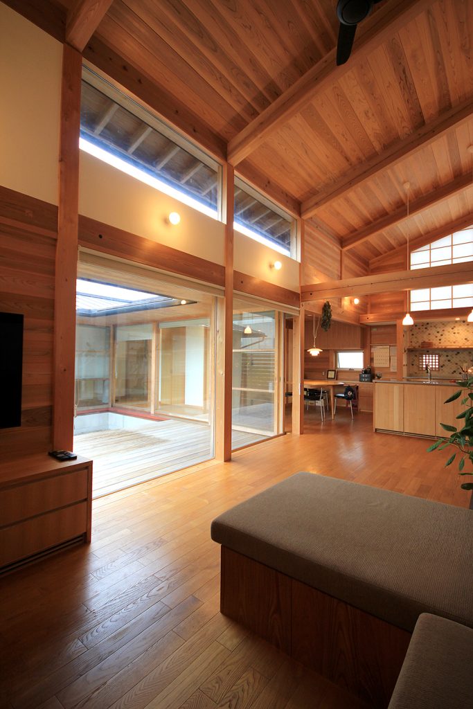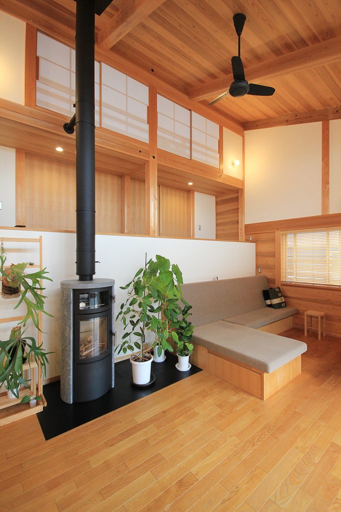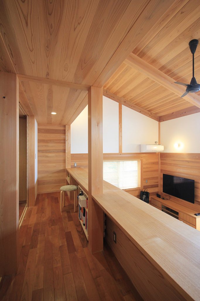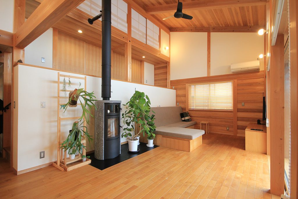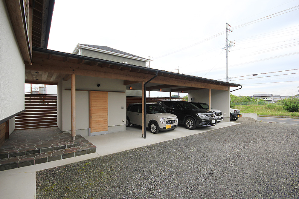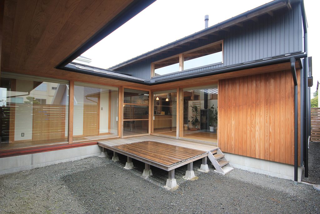 今回ご紹介するIさんご家族のお宅は、ご両親から受け継いだ実家の建て替えとして計画されました。元の家には、母屋と倉庫、車庫があり、古いながらも色々と便利で暮らしやすい住まいだと感じていたようです。しかし、旧国道と川の間に位置する土地で、二つの川が合流する位置にも近く、以前から川の氾濫について心配があり、家を建て替える時には地盤を高くし、不安を取り除きたいと強く願っていました。今回は、今までも経験のあるコの字型の建物形状と、子供室とスタディースペースをスキップフロアにする間取りを提案しました。盛りだくさんの要望と解決したい問題をひとつの家として計画してくには、計画当初からの基本計画が重要なポイントになっています。日々勉強ではありますが、これからも設計者としての感覚を育て、良い提案をしていけるように努めたいと思います。