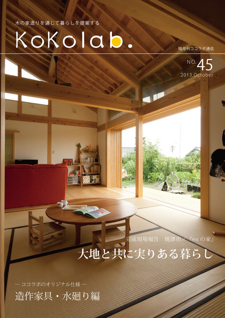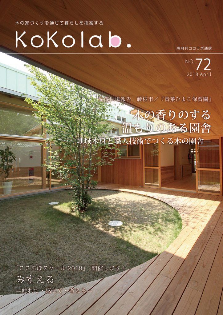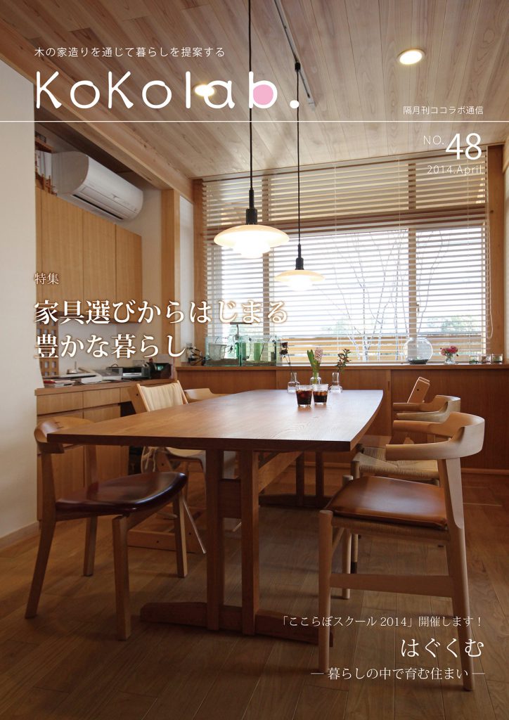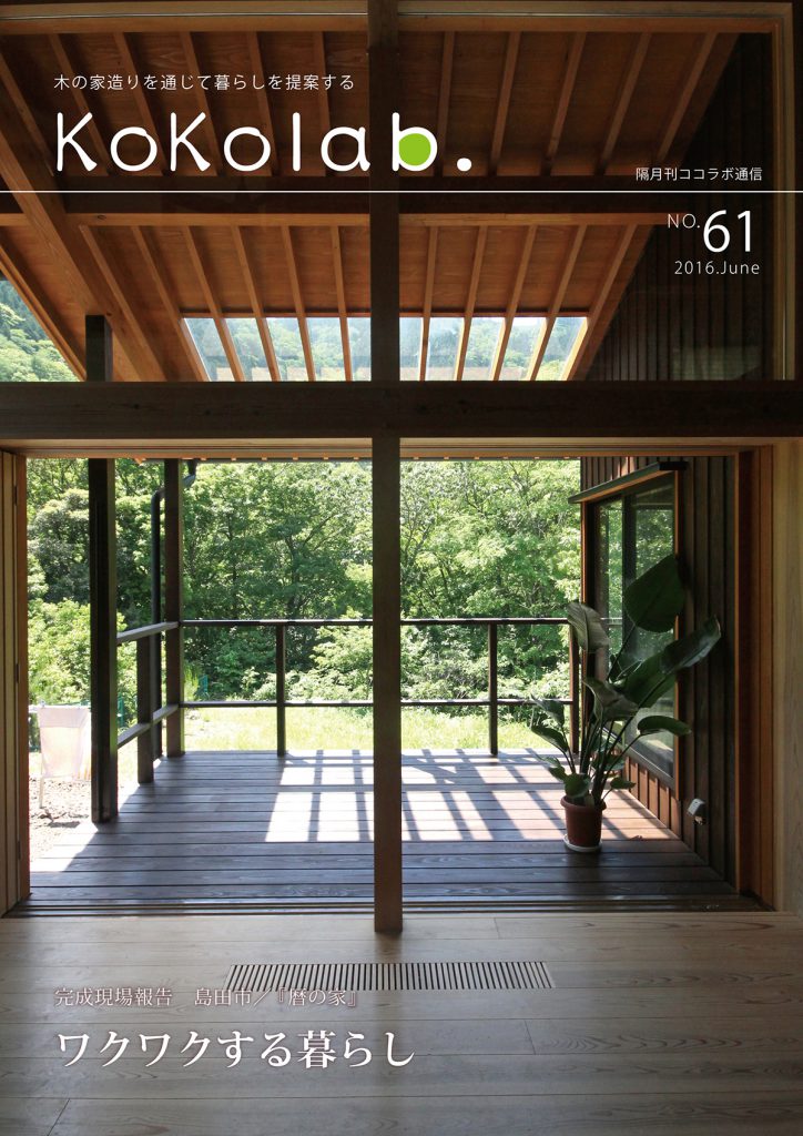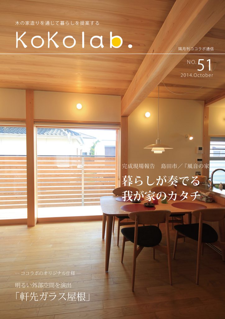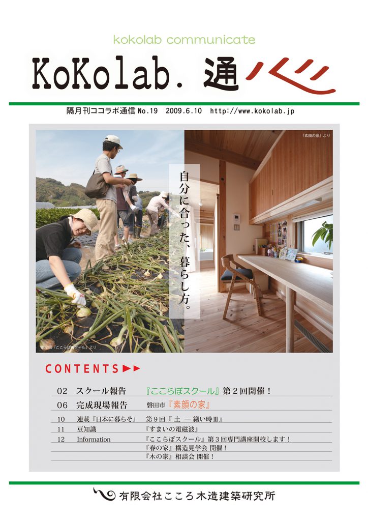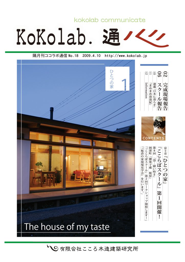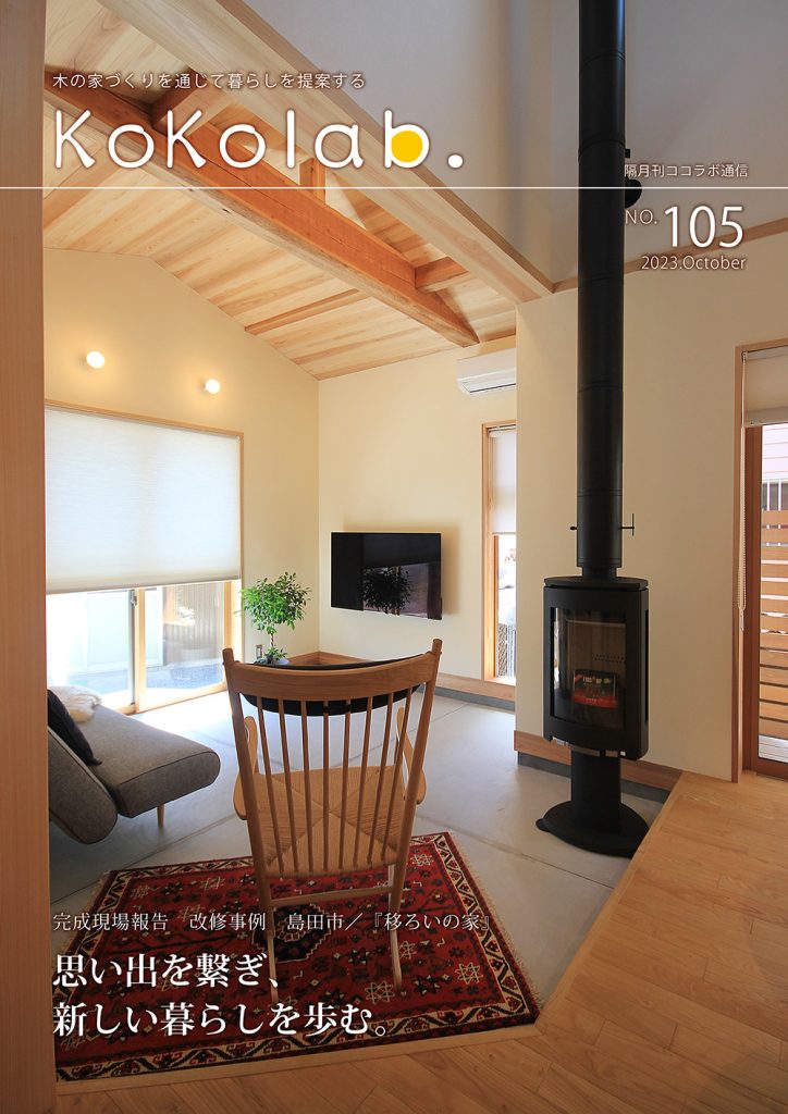 建築事例では、木の家を建築するまでの様子や、暮らし始めてからの体験、完成してから数年経過した木の家の変化などの実例をもとにご紹介し、こらから木の家を建てたいとお考えの方などにご好評をいただいています。また、こだわりのお店紹介では、おススメの商品紹介や、新しいイベント告知などをしています。ココラボ通信は、希望の方に定期的に郵送させていただいています。また、kokolab通信の設置店さんで無料配布しています。是非お手に取ってご覧ください。