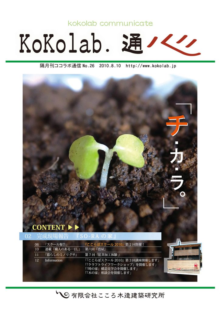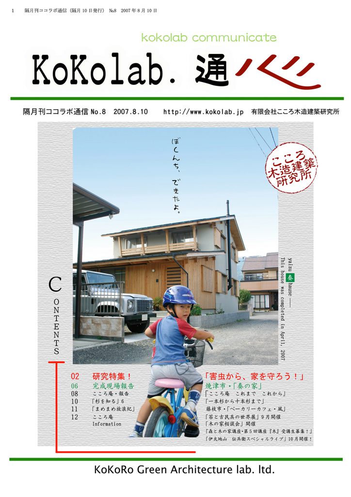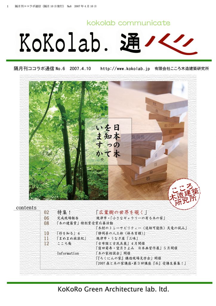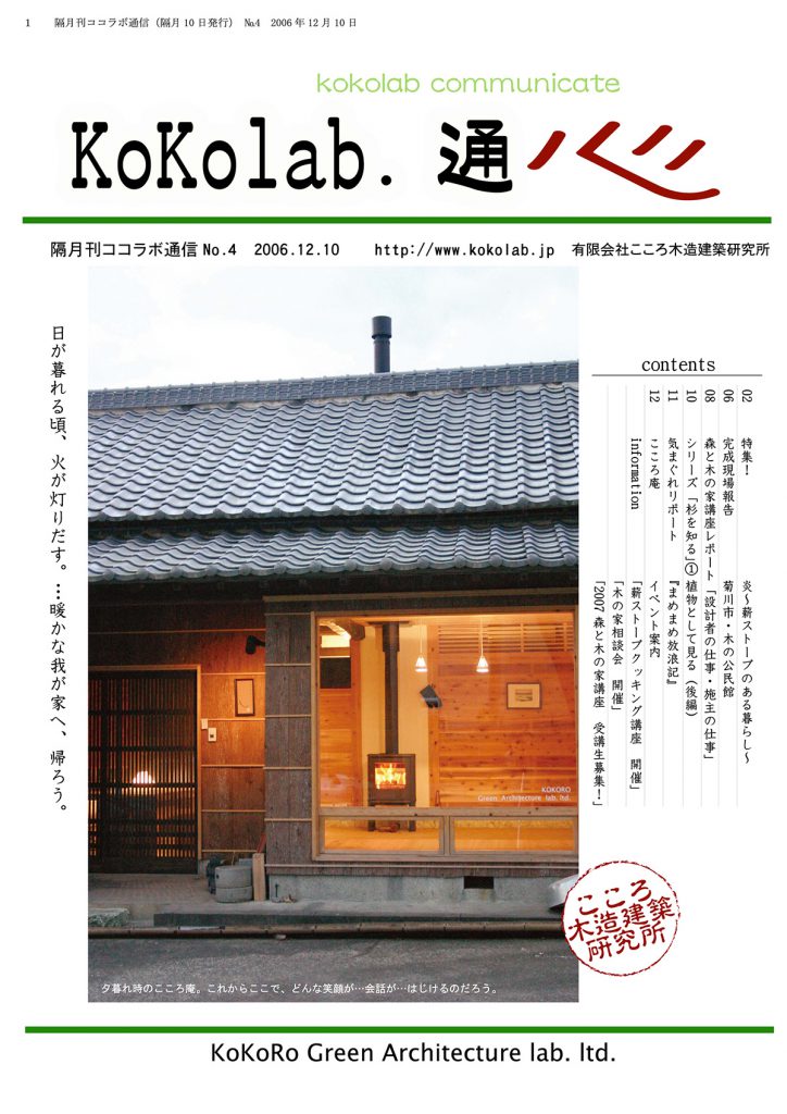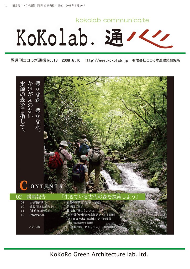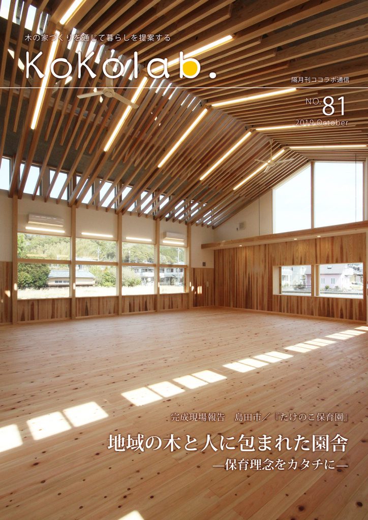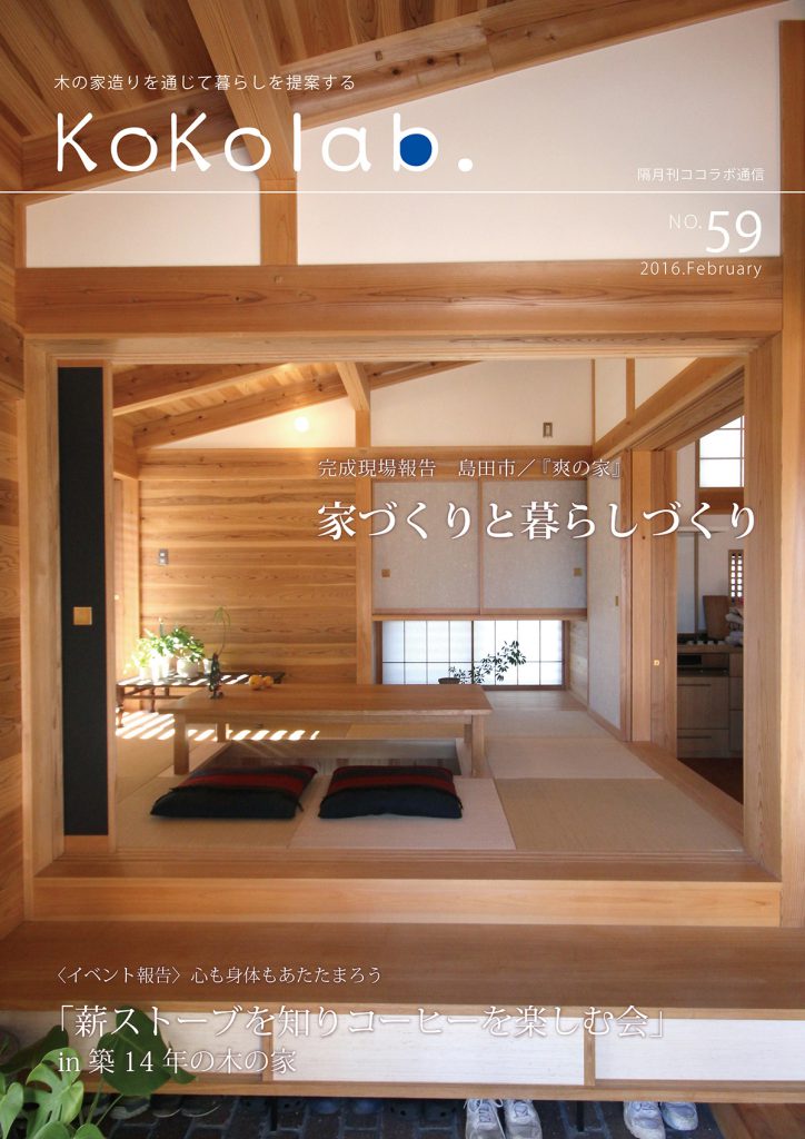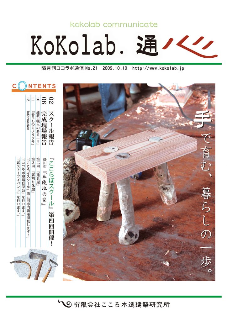 建築事例では、木の家を建築するまでの様子や、暮らし始めてからの体験、完成してから数年経過した木の家の変化などの実例をもとにご紹介し、こらから木の家を建てたいとお考えの方などにご好評をいただいています。また、こだわりのお店紹介では、おススメの商品紹介や、新しいイベント告知などをしています。ココラボ通信は、希望の方に定期的に郵送させていただいています。また、kokolab通信の設置店さんで無料配布しています。是非お手に取ってご覧ください。