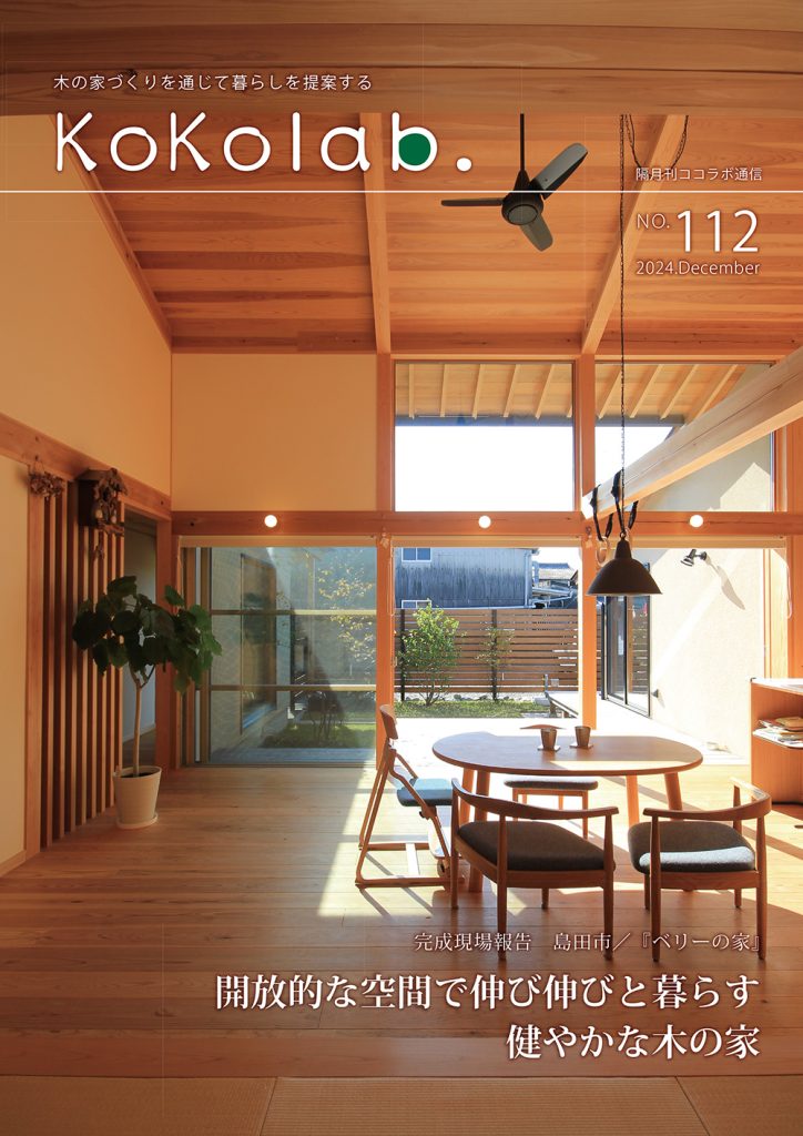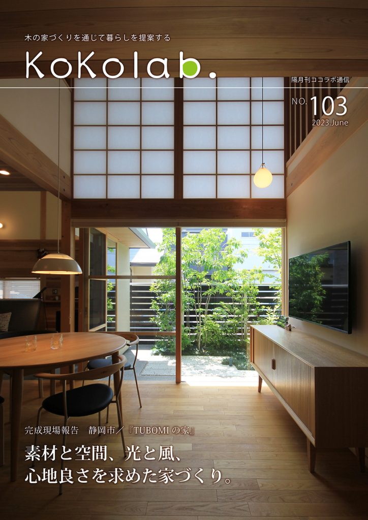 当社の活動と建築事例、こだわりのお店紹介を掲載した『ココラボ通信』は、“木の家づくりを通じて暮らしを提案する”をテーマとした隔月発行の情報誌です。会社設立時から発行をスタートし、お施主さんをはじめ、ココラボ通信の設置店さんや、家づくりに携わる職人さんなど、様々な方の協力を頂き作成しています。