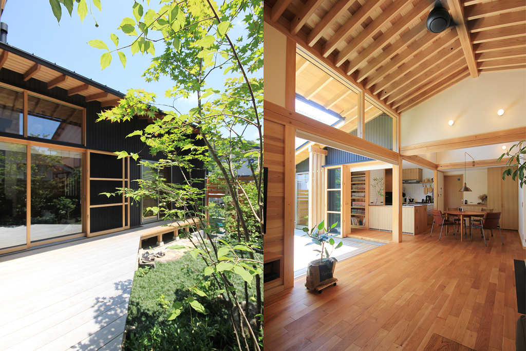 ココラボでは、木造建築にこだわり、住宅の設計施工をはじめ、施設設計や改修工事の設計施工なども行っています。木材を代表とする自然素材は、ひとつひとつに利点と欠点があり、また、色や柄、形なども様々です。木に向き合っている大工、毎日土に触れている左官職人、木の素性を見極めた建具職人など、素材を活かす職人の手仕事により、人に寄り添った心地よい建物をつくる事ができると考えています。また、伝統的な構法や素材の扱いを大切にしつつ、新しいデザインや機能性を考え、木の建築の中に、懐かしさや安心感、輝きや躍動感を混在させています。素材に向き合い、手仕事でつくる木の建築をご覧ください。