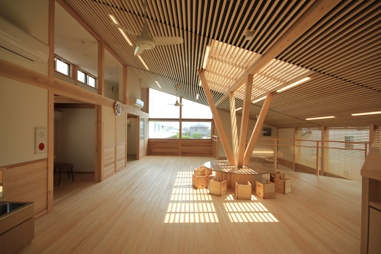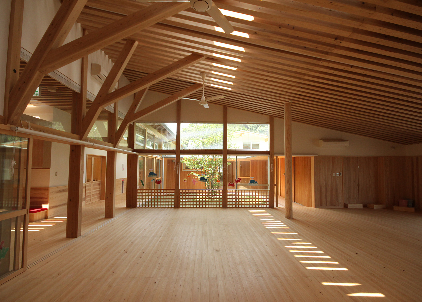 ココラボの考える施設は、木の住まいの延長上にある木の施設です。保育施設や障害者支援施設、助産施設など、住まいと同様に安心して過ごせる空間を提案し、木の心地良さを最大限に引き出した施設建築をつくっています。施設は住宅と違い、不特定多数の方が利用する建物となるため、耐震性能や防火性能を始め、遮音吸音などにも力を入れて設計しています。また、それらの建築においても、自然素材を使った提案に力を入れ、安心で心地よい施設づくりをしています。