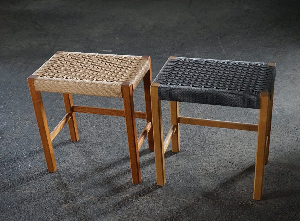 スツールのフレームに、ペーパーコードで座面を編み込み仕上げます。今回チャレンジしていただく平編みは普段使いでも緩みにくく、初心者でも丁寧に編み込むときれいな仕上がりとなります。